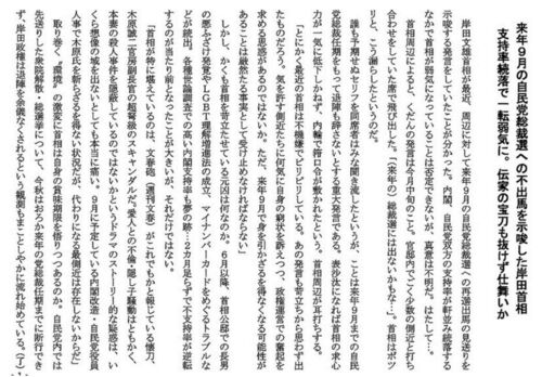 先月の7月24日永田町に下記のような怪文書が出回った。 私は政治に興味を持って半世紀超えたが、ここ10年の政局の変遷を見て来て今の岸田首相になって、政治が沖縄返還や日中国交化等現代に即した体制から考えてみると、この岸田首相によって旧体制自民党に…